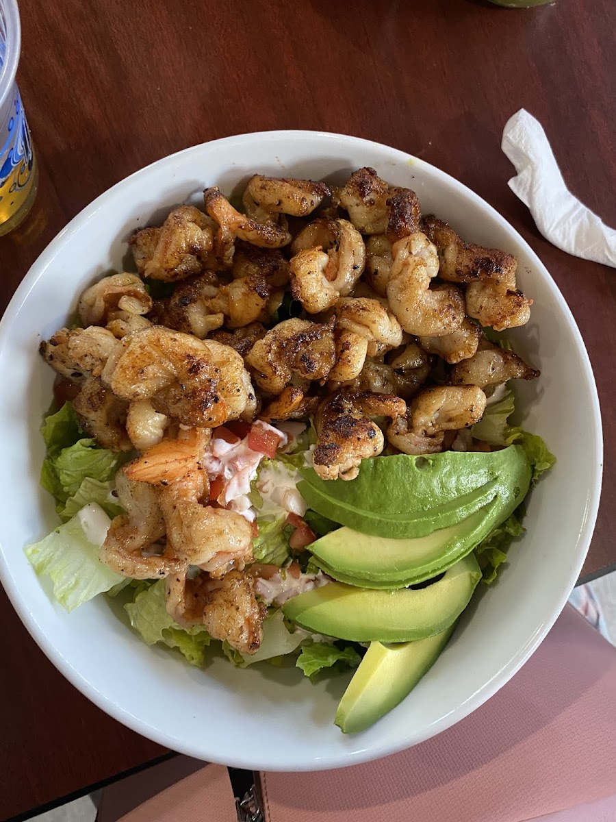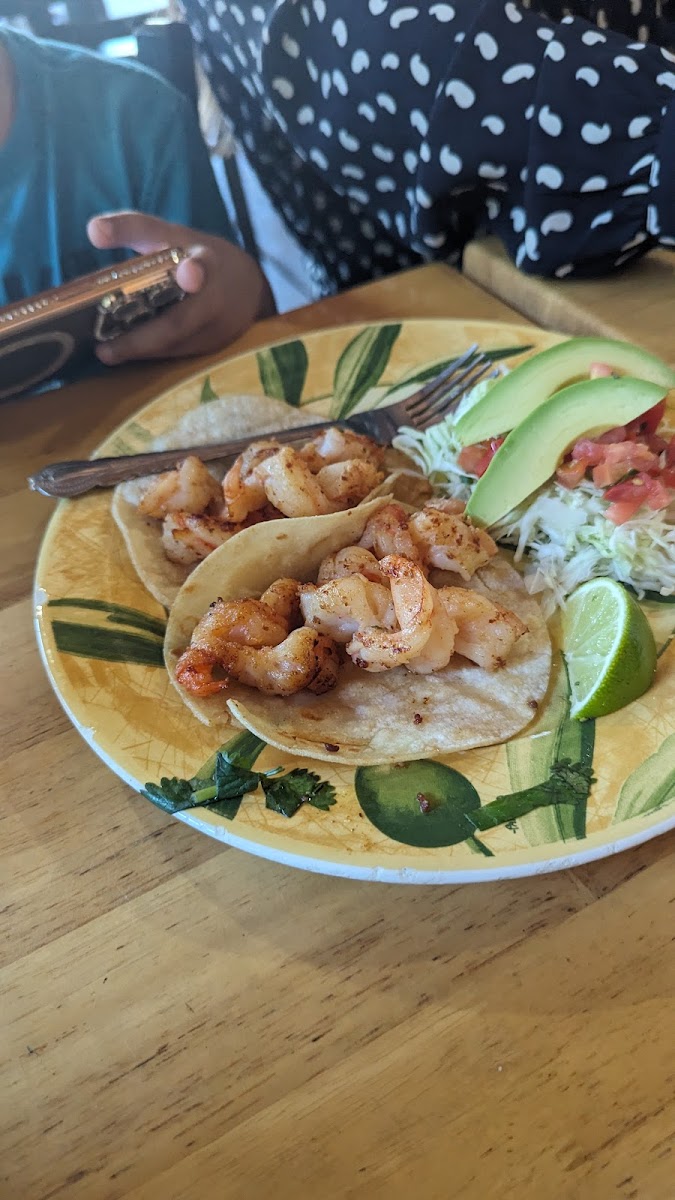 My only complaint is that prices aren’t listed on the menu. It worked out fine though. The shrimp tacos were lots of big shrimp! Grab a cold beer next door and enjoy.