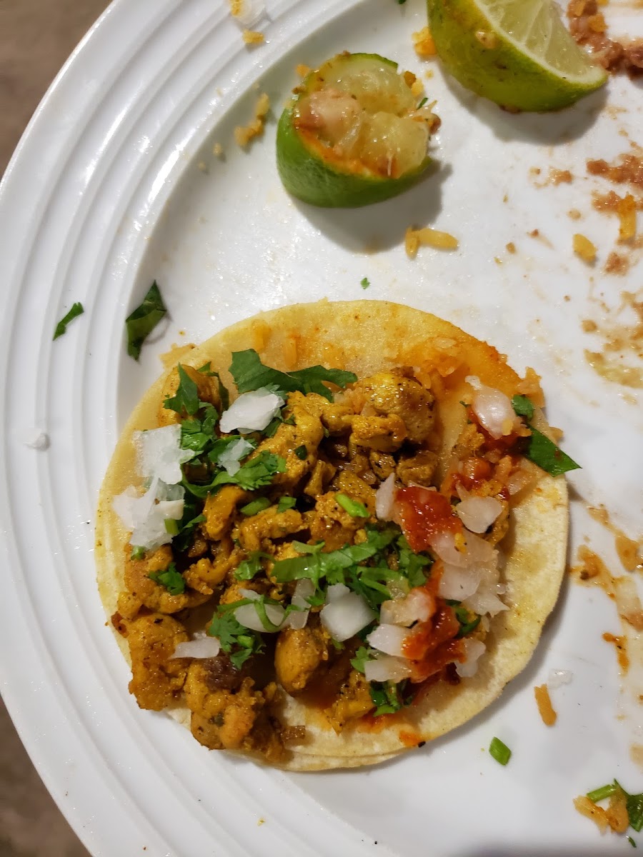 Good tacos, good place to get Mexican food. Just go up to the window and order they bring it out to you. The salsas are good. The desserts like flan are made by them. Also they have a cover sitting area and a few benches outside under tree. They do not sell drinks, the liquor store is next door and you can purchase drinks there.