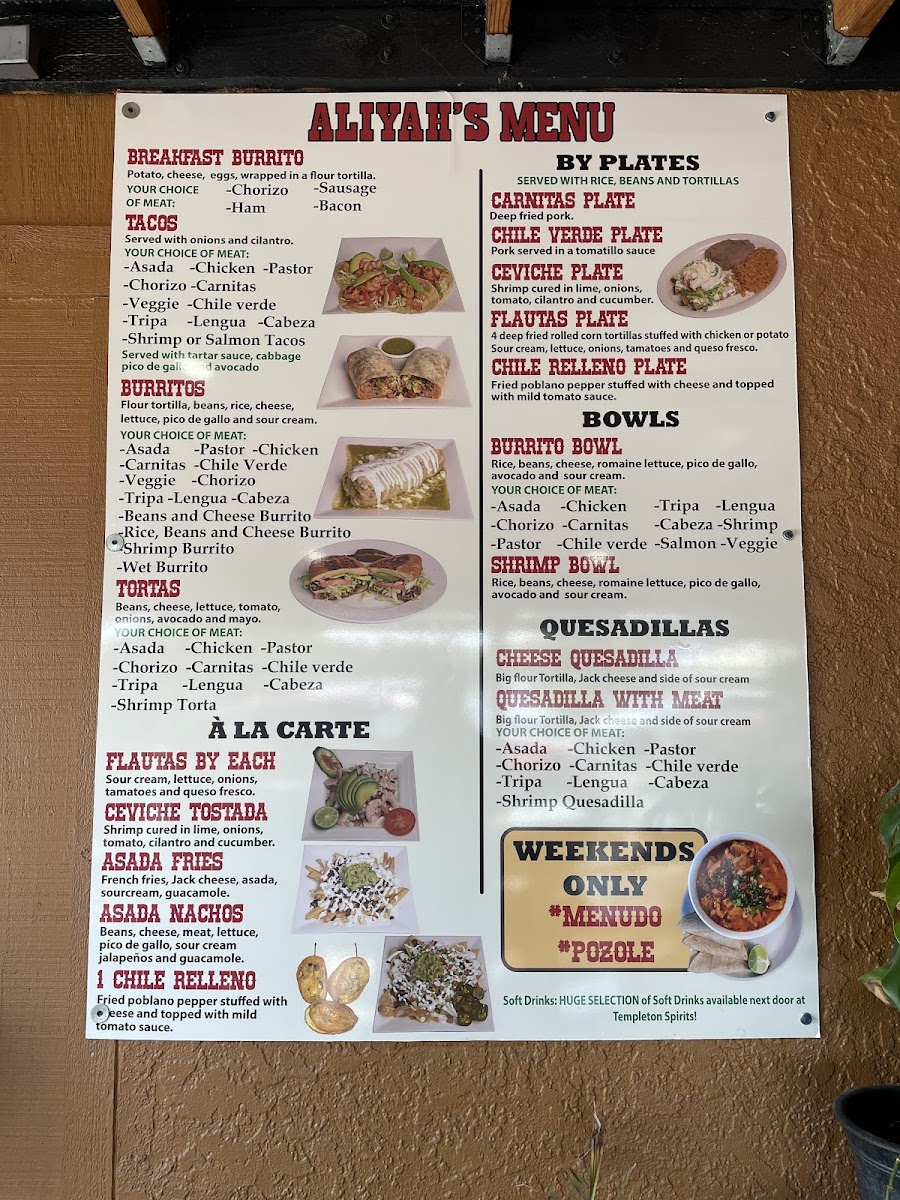 The food at Aliyah’s fits well with the setting—comforting and familiar, served in a space where diners can enjoy both covered seating and a shaded outdoor patio. Many dishes, including the chile verde and carnitas plates, are satisfying choices for anyone looking to unwind with familiar tastes alongside fresh, colorful salsas.
